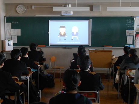 各クラスで、厚生労働省制作の動画を視聴しています。