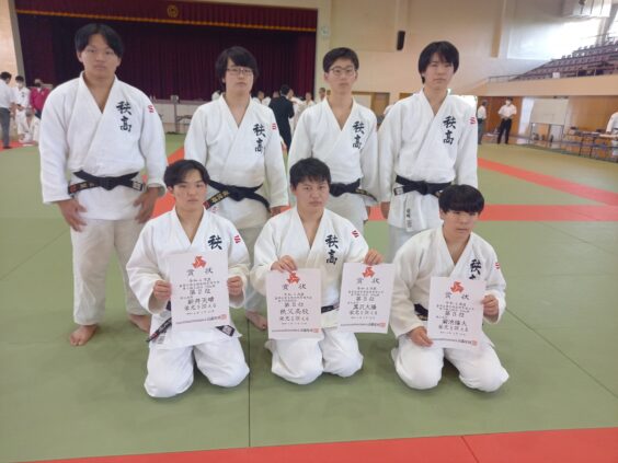 春季北部支部高校柔道大会が、4月22日(金)・23日(土)に熊谷市民体育館で行われました。22日は、団体戦が行われ、予選リーグを1位で通過し、準決勝に進みました。準決勝では、本庄東高校と対戦し4対0で敗戦してしました。その後、3位決定戦に臨み、松山高校と対戦し3対0で敗戦しました。結果、北部支部の4位入賞となりました。23日は、個人戦に出場しました。60㎏級で3年の吉田桂君が5位入賞、66㎏級で2年の新井天晴君が準優勝、73kg級で3年の岩﨑聖言君が5位入賞、81kg級で2年の菊池陽大君が3位入賞、3年生の坂本翼君が5位入賞、90kg級で3年の黒沢大陽君が3位入賞をしました。6人は、6月に行われる県インターハイ予選に北部支部の代表として出場することになりました。また他の部員も大変健闘してくれました。