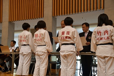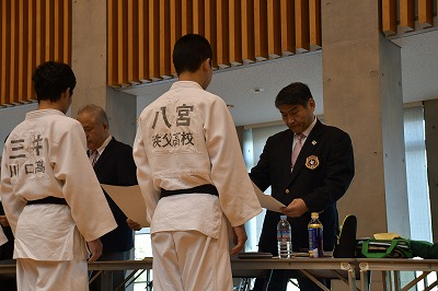 男子は、2年の齋藤大翔君と八宮道馬君が出場しました。齋藤君は、1回戦、3階級上の選手と対戦し、健闘空しく惜敗しました。八宮君は、4回戦まで勝ち進み3位に入賞しました。