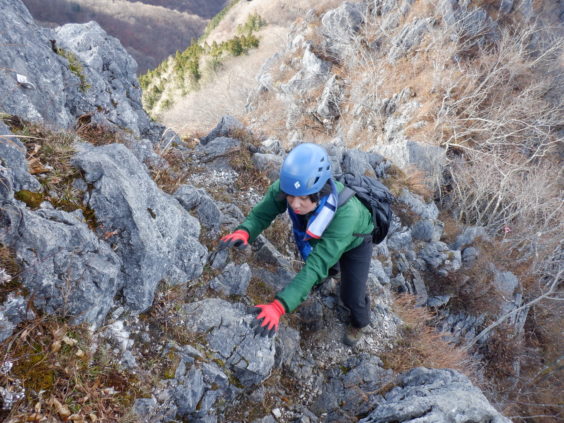 岩場。かなり高度感があり、風も強かった。