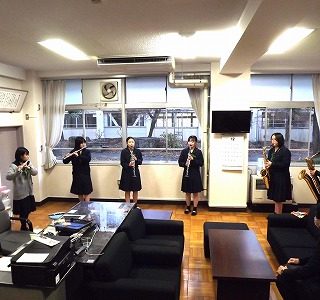 アンサンブルコンテスト県大会 2020.12.16部活動#吹奏楽部 12月18日(金)、標記大会が久喜市総合文化会館で行われます。 出場する吹奏楽部6名の生徒が当日演奏する曲を校長室で演奏しました。 【大会結果報告】お陰様で【銀賞】に入賞しました。(12月21日)