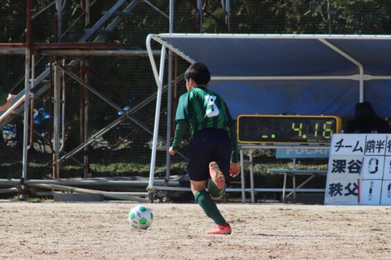 前半はお互い一進一退を繰り返しながらいい勝負をしていました。そして、フリーキックをもらい、そこからダイレクトにゴール!1点を獲得しました。