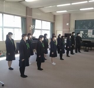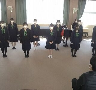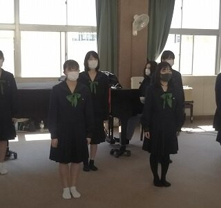 音楽部からの贈り物 2021.03.24保護者の方へ部活動 3月24日(水)午後、活動を再開した音楽部から転退職等する先生に 歌の贈り物がありました。これまで、感染症の影響で十分な練習ができていないとの 事でしたが、素晴らしい歌声でした。