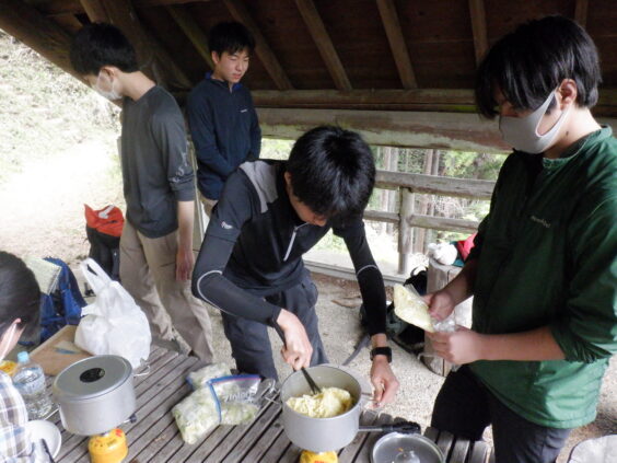 お昼は、先輩たちが手際よく焼きそばを作ってくれました。