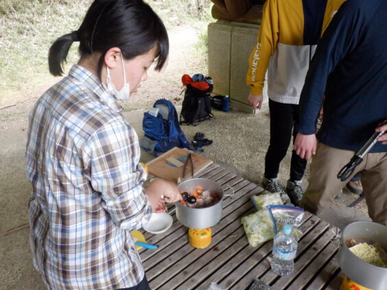 お昼は、先輩たちが手際よく焼きそばを作ってくれました。