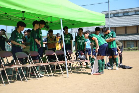 システムを4-4-2に変更し、後半も引き続き攻勢を強める。前からのプレッシャーやサイド突破など、行本(2年 影森中)や布留川(3年 吉田中)を中心に決定機を数多く作り出すが、ここも寄居城北高校さんのDF陣が最後まで集中し守り切られてしまう。徐々に攻撃陣を中心に足がつり始め、有効な攻撃が打てずに後半も試合が進んでいき、選手交代を試みるも、流れを一変させることができないまま、タイムアップ。