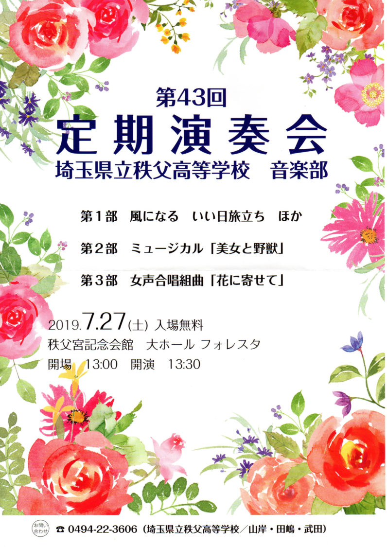 | 内容 | 第一部 風になる いい日旅立ち 他 第二部 ミュージカル 美女と野獣 第三部 女声合唱組曲 花に寄せて |