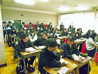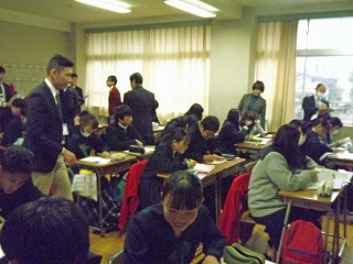 11月22日(金)、標記事業に係る研究授業並びに秩父地区中高英語教育研究連絡協議会・合同研究事業を開催しました。この日は、ご指導いただいている法政大学教授飯野先生、埼玉県教育委員会、北部教育事務所秩父支所、秩父市教育委員会を初め、多くの方々に参加していただきました。