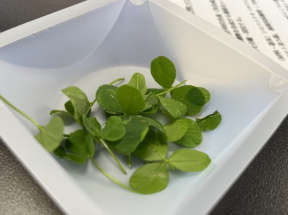 まずは植物を用意します。今回は秩父高校の敷地内に生えていたシロツメクサを用意しました。
