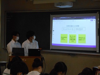 自分たちがまとめた模造紙を提示しながら、一生懸命
