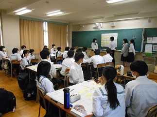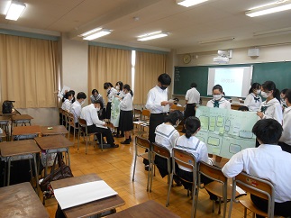 自分たちがまとめた模造紙を提示しながら、一生懸命