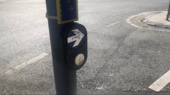 このHIGHWAY、歩道を渡るときは歩行者用ボタンを押さなければいけません。もし、先頭に立ったらこのボタンを押すのをお忘れなく…。