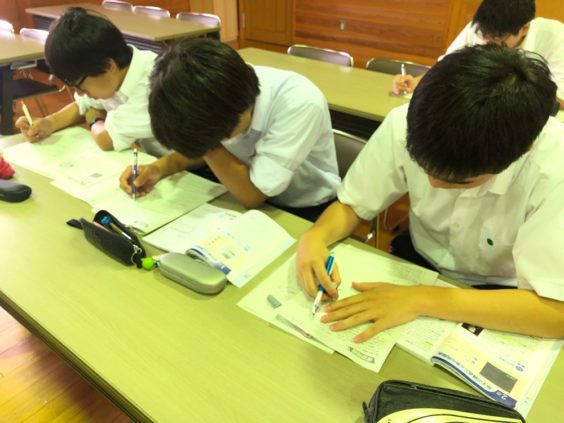 8月13日〜16日までの4日間、1年生対象に化学基礎の夏期講習を行っています。内容は1学期の復習です。