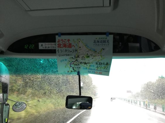 北海道、新千歳空港の天候は雨。といっても、雨に濡れることもなくバスに乗車し、最初の目的地であるサッポロピリカコタンへ向かう。
