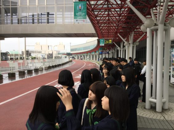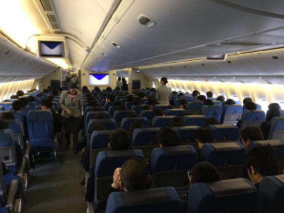 羽田空港第2ビル地下1階 8:30集合、欠席者なし。出発式を終えて出発ゲートへ移動。ANA便、遅延はなく定刻に出発。