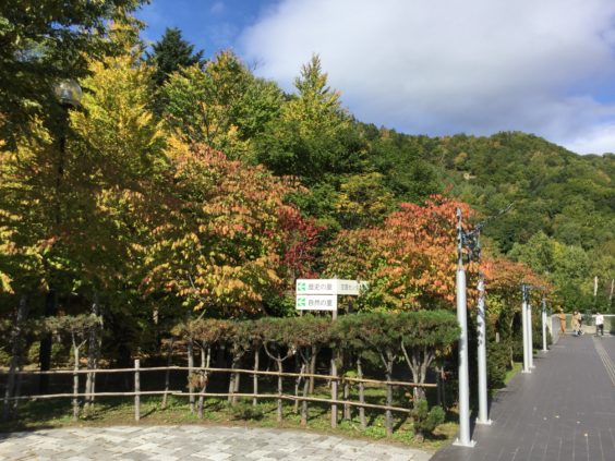 アイヌ語で、「ピリカ」とは「美しい」という意味で「コタン」とは「町」。つまり、「サッポロピリカコタン」とは「札幌は美しい町」となる。移動中、山では紅葉が始まっており、すっかり秋。サッポロピリカコタンへ到着したときには、雨も上がり晴れ間も見える。講話の担当者は埼玉県出身であり奥さんがアイヌの方。その縁で、この仕事をしているとのこと。