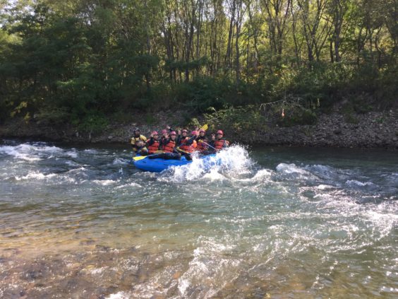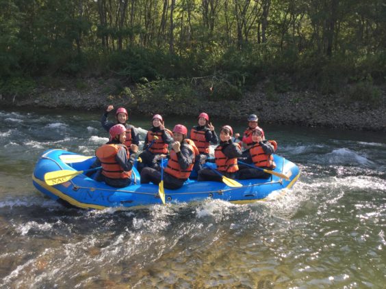 ニセコでは、ラフティング、フィッシング、キャラメル作り体験。バスツアーでは、洞爺湖、長万部へ。ラフティングではずぶ濡れになり大騒ぎ。ラフティングのガイドさんは多国籍で、皆、口を揃えて「I love Hokkaido」と。フィッシングの釣果は平均より良い。釣り上げ数と大きさで競う。キャラメル作り、生徒作の生キャラメルを私も試食。旨し。絵皿も作製したようで個性溢れる力作が多数。バスツアーでは地元 虻田高校の生徒14名からガイドして頂きました。同時に、北海道新聞、読売新聞、室蘭民放、洞爺湖町役場、北海道運輸局の取材も受ける。インターンシップも兼ねているようである。