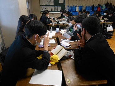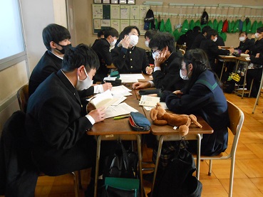 まず各班で感想を話し合い、その後、班の代表者がクラス全体に向けて発表をします。