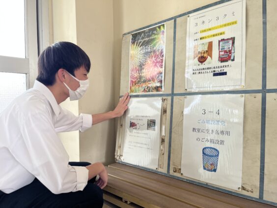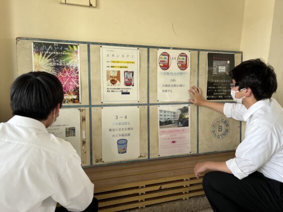 政党のポスターを作成し3年生の昇降口に掲示しました。