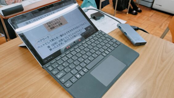写真のように、各クラスにGoogle Meetを利用して配信しました。