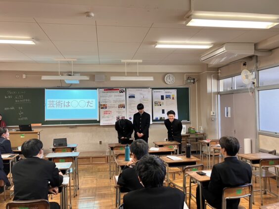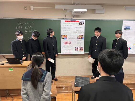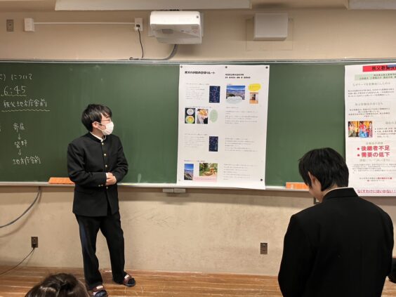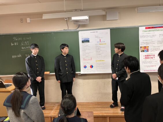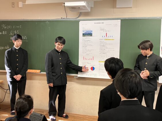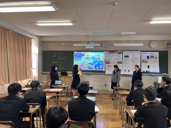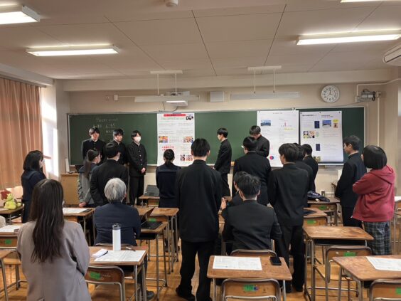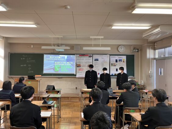 2学年の総合探究で、県での発表会に参加するチームの発表リハーサルを行いました。