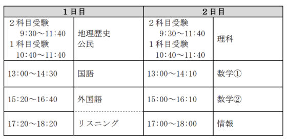 こちらの資料は、大学入学共通センターが公表している、共通テストの時間割です。