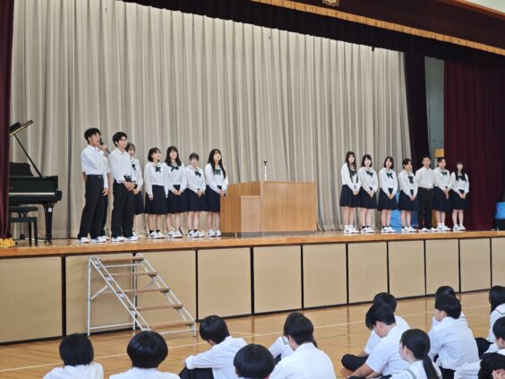 特に印象的だったのは、語学研修プログラムのリーダーを務める生徒2名による、英語でのスピーチです。彼らは、今回の研修にかける熱い思いや、現地での学びへの意気込みを流暢な英語で堂々と発表しました。その姿は、参加生徒だけでなく、全校生徒にとっても大きな刺激となったことでしょう。