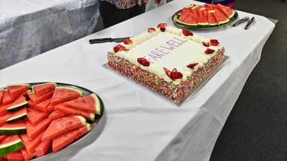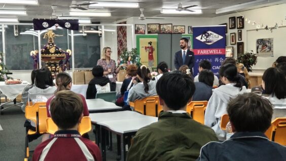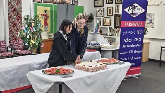 その後、ロビーナ高校の代表生徒と秩父高校の代表生徒が”FAREWELL”と書かれた大きなケーキをカットし、全員で美味しくいただきました。