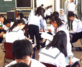 音楽 協調学習授業 2019.09.26お知らせ保護者の方へ秩父高校の授業 9月26日(木)、1年生「音楽Ⅰ」で「知識構成型ジグソー法を用いた協調学習」の研究授業を行いました。今回は、ゲーテ作詞の「野ばら」を題材に3つの視点から曲に込められた作者の思いを表現することをねらいとしました。