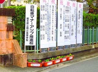 上町町会からお花をいただきました 2019.10.25お知らせ保護者の方へ 10月24日、秩父市の「花いっぱい運動」の一環で上町町会の方からプランターで花を頂きました。 校門周辺が明るくなりました。ありがとうございます。