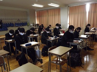 今回は、約120名の生徒が試験に臨みます。校長の言葉に続き、進路指導主事より