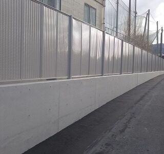 正門付近の部分は、開放感のあるメッシュフェンスに、グランド側は