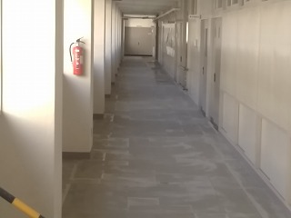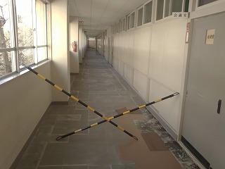 特別教室棟2階廊下の床改修工事が始まりました。40年以上経過し、老朽化した廊下が