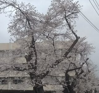 *写真右下は、学校付近を流れる「押堀川」沿いの桜並木です。