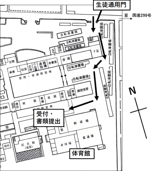 【会場案内】3月18日(月)入学許可候補者説明会 2024.03.14お知らせ 3月18日(月)13:00より本校体育館2Fにて受付を開始します。案内図の経路に従って体育館1Fより入館してください。学校内への車の駐車はご遠慮ください。