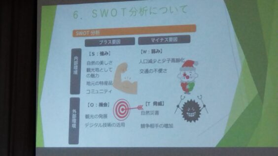 生徒達もクイズに解答したり、「SWOT分析」に関して
