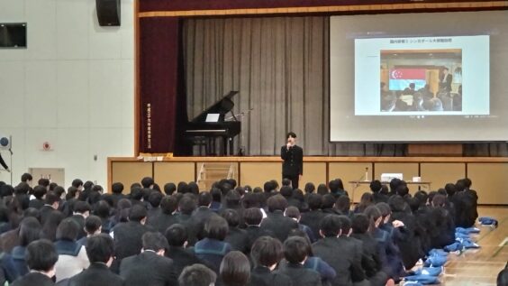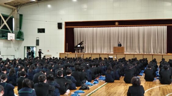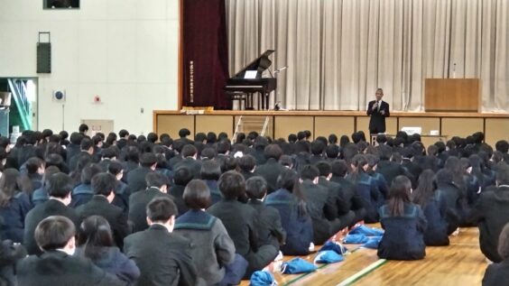 お話があり、生徒達は真剣な眼差しで聞いていました。