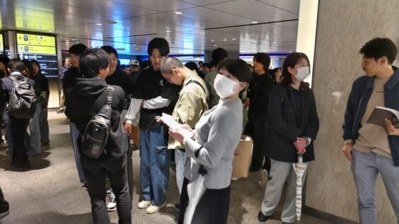 9時に東京駅丸の内団体集合場所に班ごとに集合、