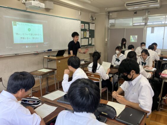 6月19日の総合的な探究の時間では、探究のノウハウを学ぼうの第2弾として「問をつくる」をテーマに学びました。探究活動では最初に課題設定をし、自分たちで立てた問いをもとに活動していきます。わからないこと誰かに聞く「質問」、物事を改善するために掲げる「問題」、目に見える前提や常識を疑う「疑問」など様々な「問い」があり、探究の出発点となる重要な要素です。今回は、高校魅力化コーディネーターの神宮さんにレクチャーをしていただきました。