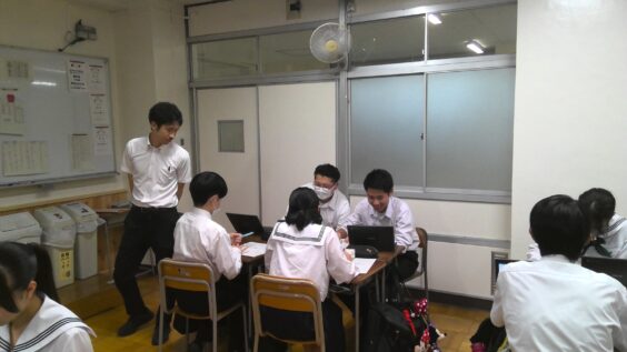11日の講演とトークセッションに関連して「外国人向けのツアープランを作ろう」というテーマで探究活動を行いました。グループに分かれ、情報収集をしながらターゲットやコンセプトを考えました。