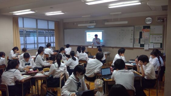 秩父地域おもてなし観光公社の保泉様をお招きし、秩父のインバウンドの現状と取り組みについてご講演頂きました。トークセッションでは英語科と社会科の先生に教科目線での質問や意見を話してもらい、とても興味深い話を聞くことができました。また、本校卒業生で海外の大学に進学した平沼さんにもお越しいただき、大学での活動など貴重な話を聞かせていただきました。