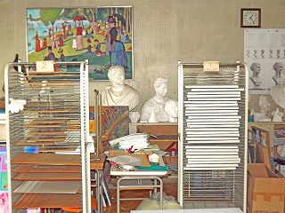 現在、期末考査中で静まり返っていますが、美術の授業や美術部等の活動にも