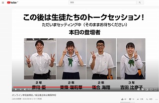③校長挨拶 ④学校概要説明 ⑤トークセッション(以上が、当日ライブ配信した内容です。)